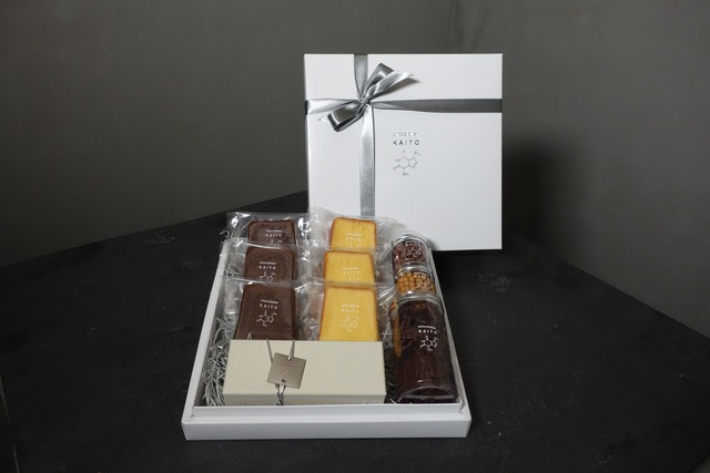 【商品説明】 いろいろなヴァリエーションのお菓子が入った詰め合わせギフトです。 商品内容は下記です。 ・パールレプティ 1個 ・パールブロンズプティ 1個 ・カカオヌガティーヌ プティ 1個 ・ケークオショコラ 2個 ・ケークオラム 2個 合計6点 ※手提げが必要な方はオプションより手提げの選択をお願いします。 ※本商品はリボン包装でギフト需要とさせていただきます。熨斗や包装紙のご要望にはお応え出来かねます。 【サイズ】 16.5cm × 16.5cm × 6cm ※箱のサイズになります。 【原材料】 卵、バター、砂糖、薄力粉、アーモンドパウダー、転化糖、グレープシードオイル、カカオ豆、カカオバター、シリアル(小麦粉、ショ糖、小麦麦芽、小麦澱粉、食塩)、全粉乳、カカオ豆、乳化剤(大豆由来)、ラム酒/ペーキングパウダー、バニラエキス、光沢材、乳化剤(大豆由来) 【賞味期限】 焼き菓子:製造日より20日間 チョコレート:製造日より30日〜50日間 【保存方法】 高温多湿を避けて保存して下さい。